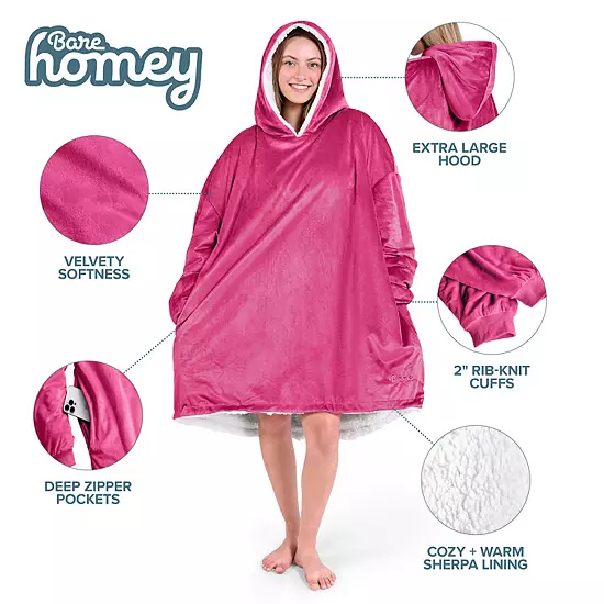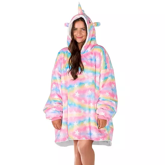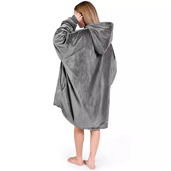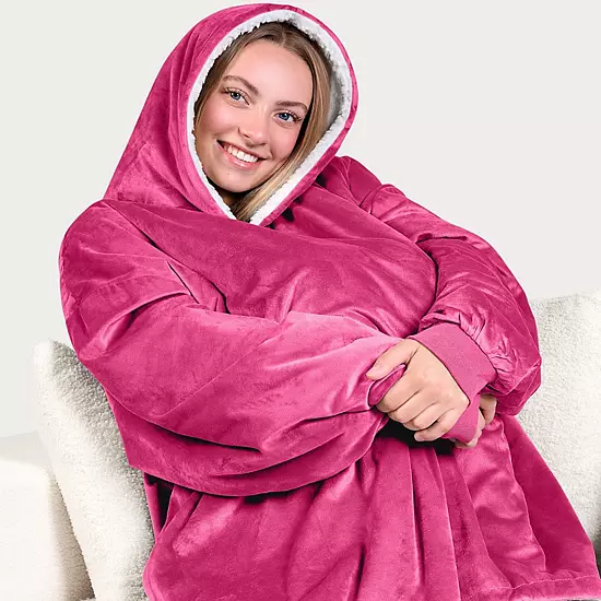 Snuggle up in our oversize fleece wearable blanket. With velvety minky fleece on the outside and fluffy soft fleece on the inside, you can stay warm and toasty while enjoying the ultimate comfort. At 400 GSM, our wearable blanket hoodie is both lightweight and insulating – perfect for indoor or outdoor use. Generous wrist cuffs slide over hands (not too tight!) and an oversize hood keeps your ears warm.
