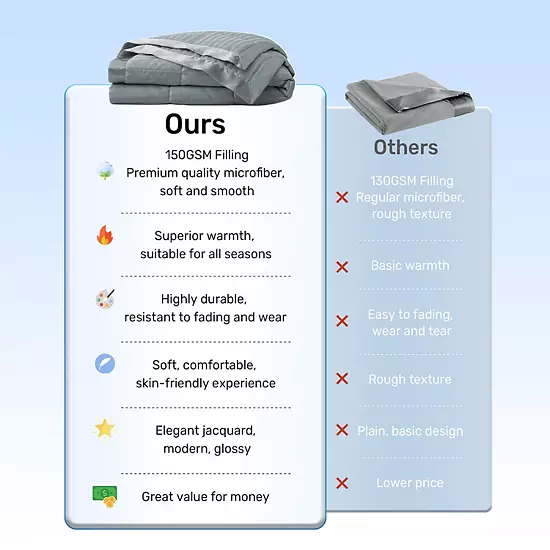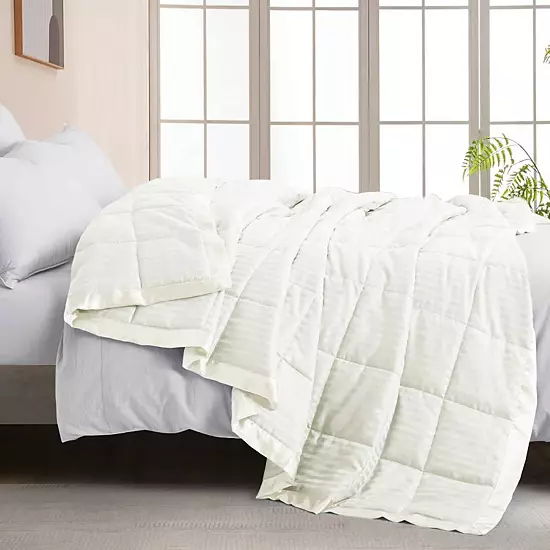 Experience ultimate comfort with our Lightweight Down Alternative Blanket with Satin Trim. Designed for year-round coziness, this oversized blanket combines a soft and breathable fabric with a luxurious satin trim for a touch of elegance. Perfect for layering on your bed or as a standalone blanket. Crafted with premium materials, this blanket is lightweight, durable, and easy to care for, making it ideal for home, travel, or gifting. Upgrade your sleep experience with this stylish and versatile addition to your bedding collection.