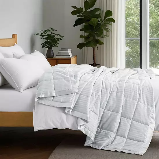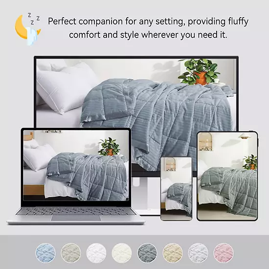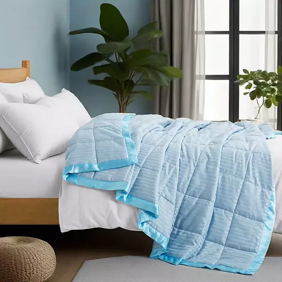 Discover comfort with our Lightweight Down Alternative Blanket, adorned with satin trim for an elegant touch. Enjoy warmth without bulk, perfect for year-round use. Crafted from quality materials for a luxurious and cozy experience.