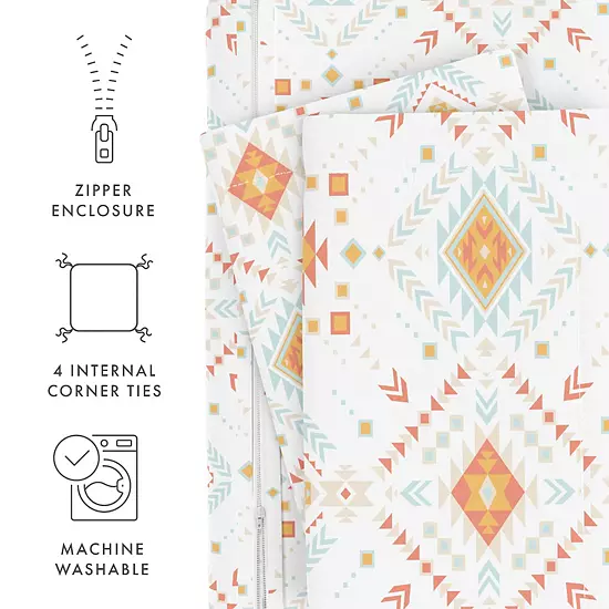 - Zippered closure and duvet corner ties