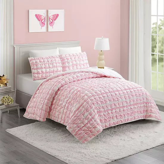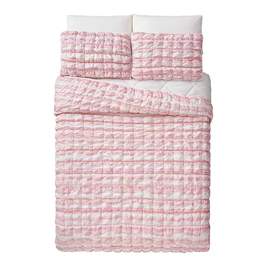 Drift into a peaceful night’s sleep with this Dreamy Clouds Quilt Set. Crafted from 100% brushed polyester with a lightweight polyester fill, this quilt set offers year-round comfort.