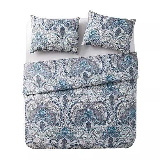 - 3-piece blue damask quilt set