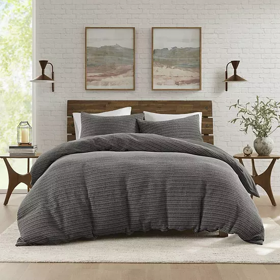 Transform your bedroom into a sophisticated retreat with the Woolrich duvet set, featuring a charming waffle texture that adds depth and style.